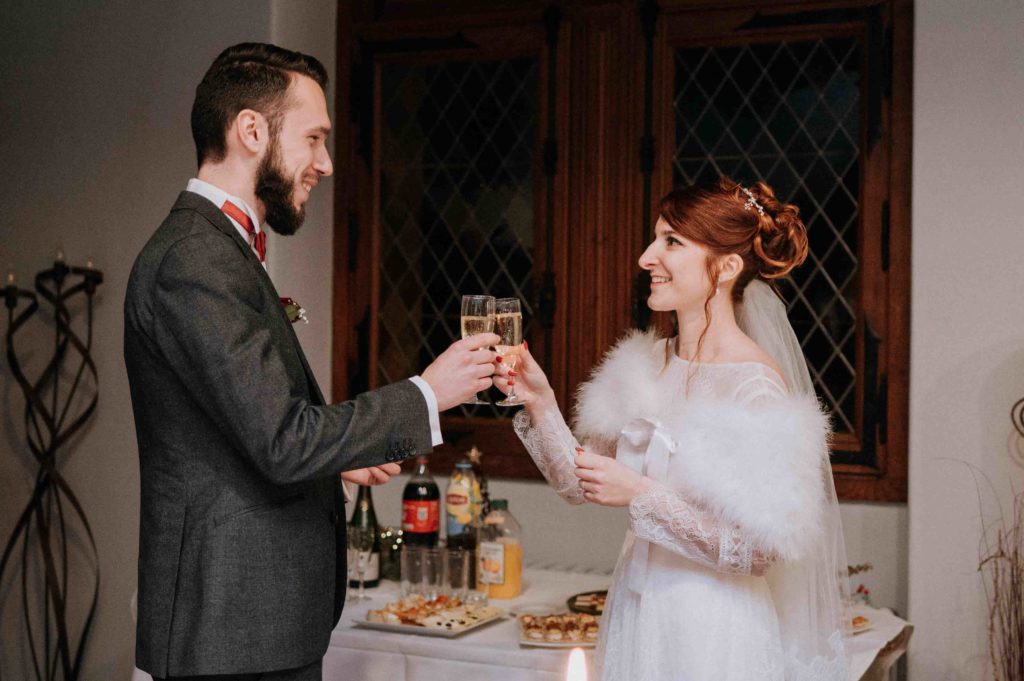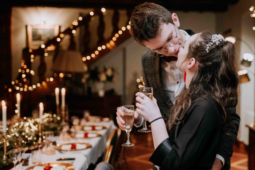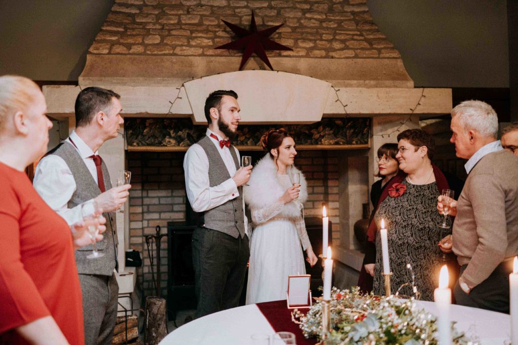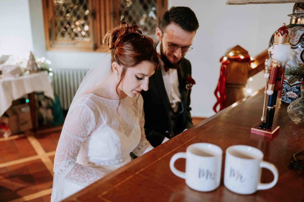 Les mariés avaient préparé une magnifique décoration de Noël. Il y avait du vin chaud et du chocolat chaud pour que les invités puissent prendre un petit goûter avant la cérémonie laïque.