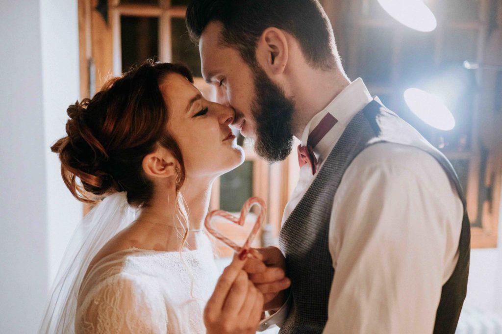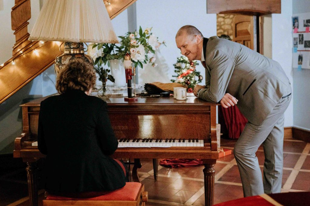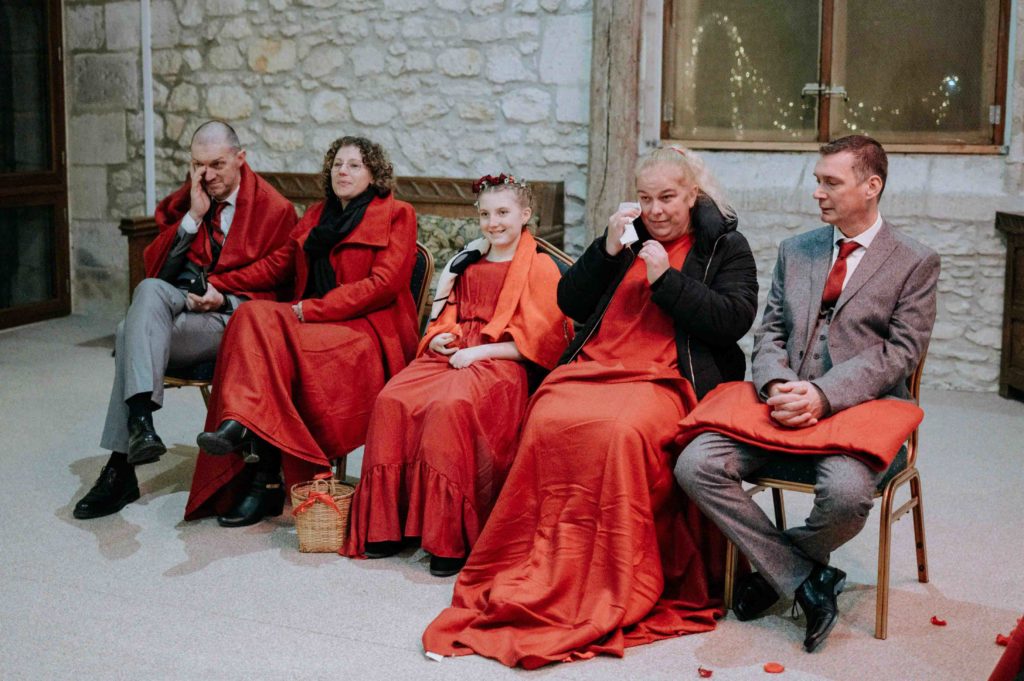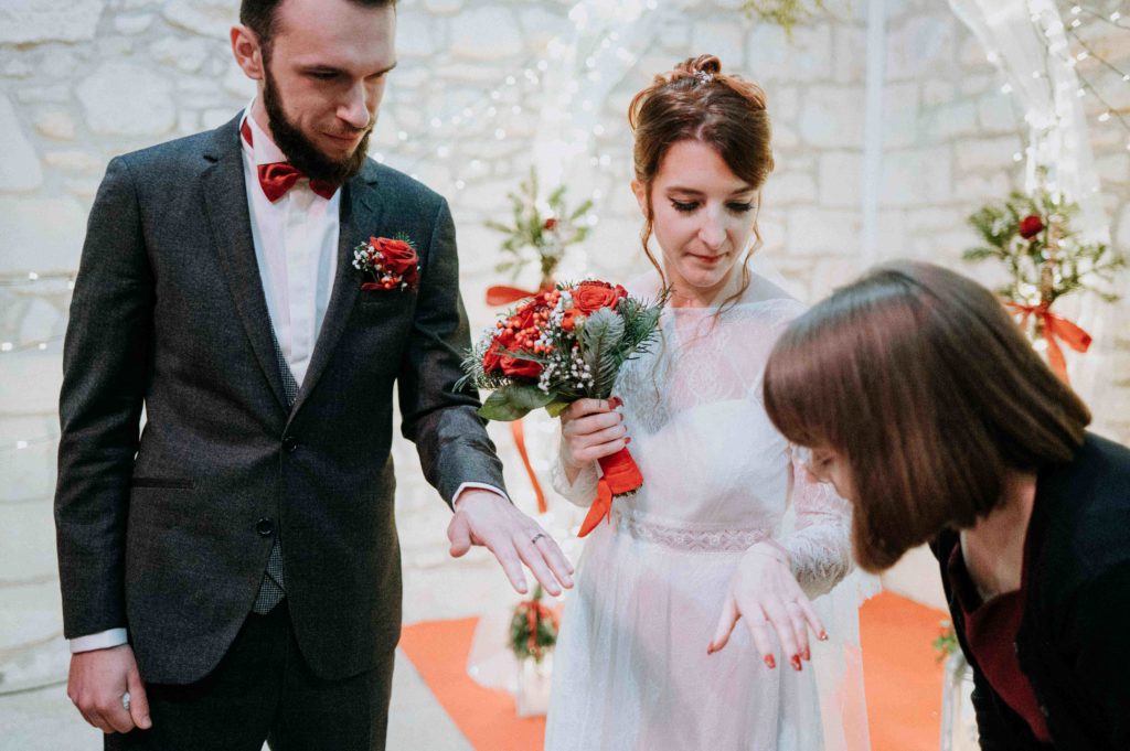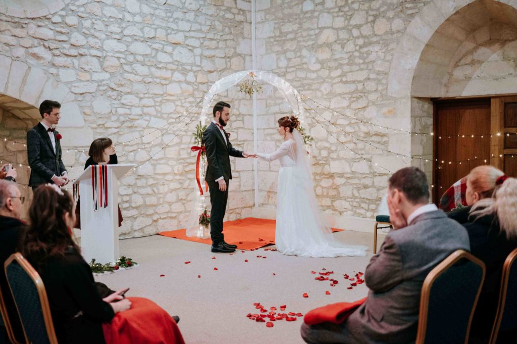 A 17h, la cérémonie laïque a commencé, toujours avec des petits clins d’œil à Noël, comme la branche de gui accrochée à l’arche pour le moment du bisou.